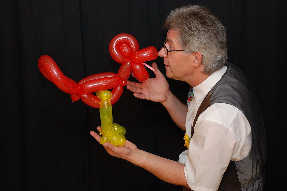 Immer wieder gerne gesehen ist das Modellieren von Luftballonschlangen zu lustigen Tieren oder Gebilden, die die Kinder oder Erwachsene direkt geschenkt bekommen. Nicht die Massenproduktion ist mein Stil, sondern das Einpacken in lustige Geschichten und Einbinden des kleinen und großen Publikums.